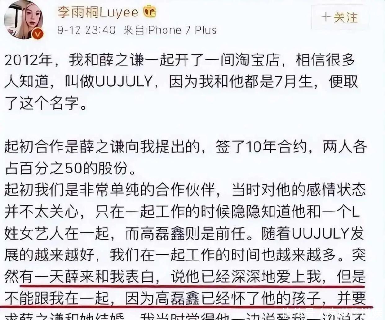 才刚过完三月的第一个早晨,本以为娱乐圈会稍微安静点,没想到李雨桐的一篇长文,又把一段陈年往事送上了风口浪尖。她直指薛之谦婚内出轨自己,不仅逼她打掉孩子,还骗钱,甚至疑似重婚犯罪。这一瓜一出,网友瞬间炸锅,讨论热度居高不下,更狗血的是,薛之谦的前妻高磊鑫也被顺带拉下了水,有人爆料她手里掌握薛之谦出轨的全部证据,可这些年始终选择沉默。瓜田里的这两口子,加上“多年好友”李雨桐,主角一个比一个还带劲。事情得追溯到2015年。当年薛之谦和高磊鑫公开离婚时,还在微博上说什么和平分手,两个人分开得体面。可没多久,网友就开始起疑,离婚协议曝光后,所谓的“和平”似乎缺了那么点意思。比如协议里那些净身出户的说法,配合两人婚后共同居住、资金混用的传闻,怎么看都像是“离而不分”。直到2017年,薛之谦和高磊鑫高调公布复婚,却像打开了多年的潘多拉魔盒——这边前妻刚复平淡生活,那边李雨桐当即蹦出来,手撕薛之谦就是个“渣男”。她控诉薛之谦和自己在一起时,根本没和高磊鑫彻底离婚,还爆料薛父母威胁她打胎,拳拳剑指道德底线。