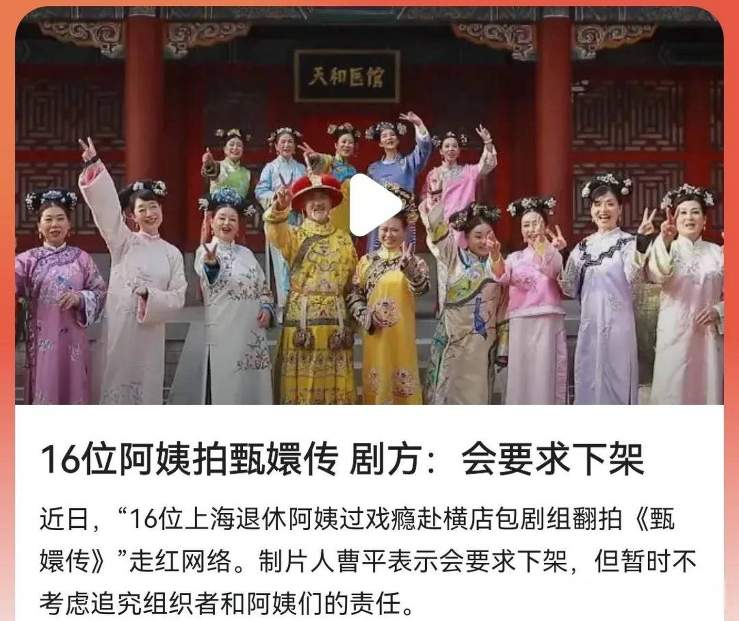 这些"非专业选手"的创作充满反差萌。英子大娘记不住台词,儿子就把"菀菀类卿"翻译成"就像喜欢你闺女似的";上海阿姨们拍对手戏笑场十几次,导演喊"卡"时,道具组的假花已经被摇得花瓣纷飞。但正是这种不完美的真实戳中了观众——岁的"皇上"把圣旨念成超市购物清单,当"华妃"忘了台词直接用上海话吐槽"侬脑子瓦特啦",屏幕外的年轻人突然发现:原来奶奶辈的快乐这么简单。有网友留言:"看她们演得比正剧还投入,突然明白《甄嬛传》里那句'逆风如解意',说的就是这群和岁月较劲的阿姨啊。" 如今这些银发剧组已经有了"续集计划"。上海阿姨们吵着要拍《情深深雨濛濛》,英子大娘则在学《太阳的后裔》里的韩语台词。她们的视频没有精致服化道,却让无数人看到:普通人生从没有"过期"一说。就像那位演了三十年话剧没红的上海阿姨说的:"以前总觉得舞台在剧院,现在发现,只要心里有光,小区广场都是我的横店。"毕竟,能把柴米油盐过成诗的人,本身就是生活的最佳主角。
